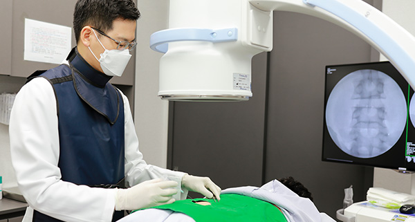긴 바늘을 이용하여 통증이 발생하는 신경 주변에 약물을 뿌리는 치료법입니다.
